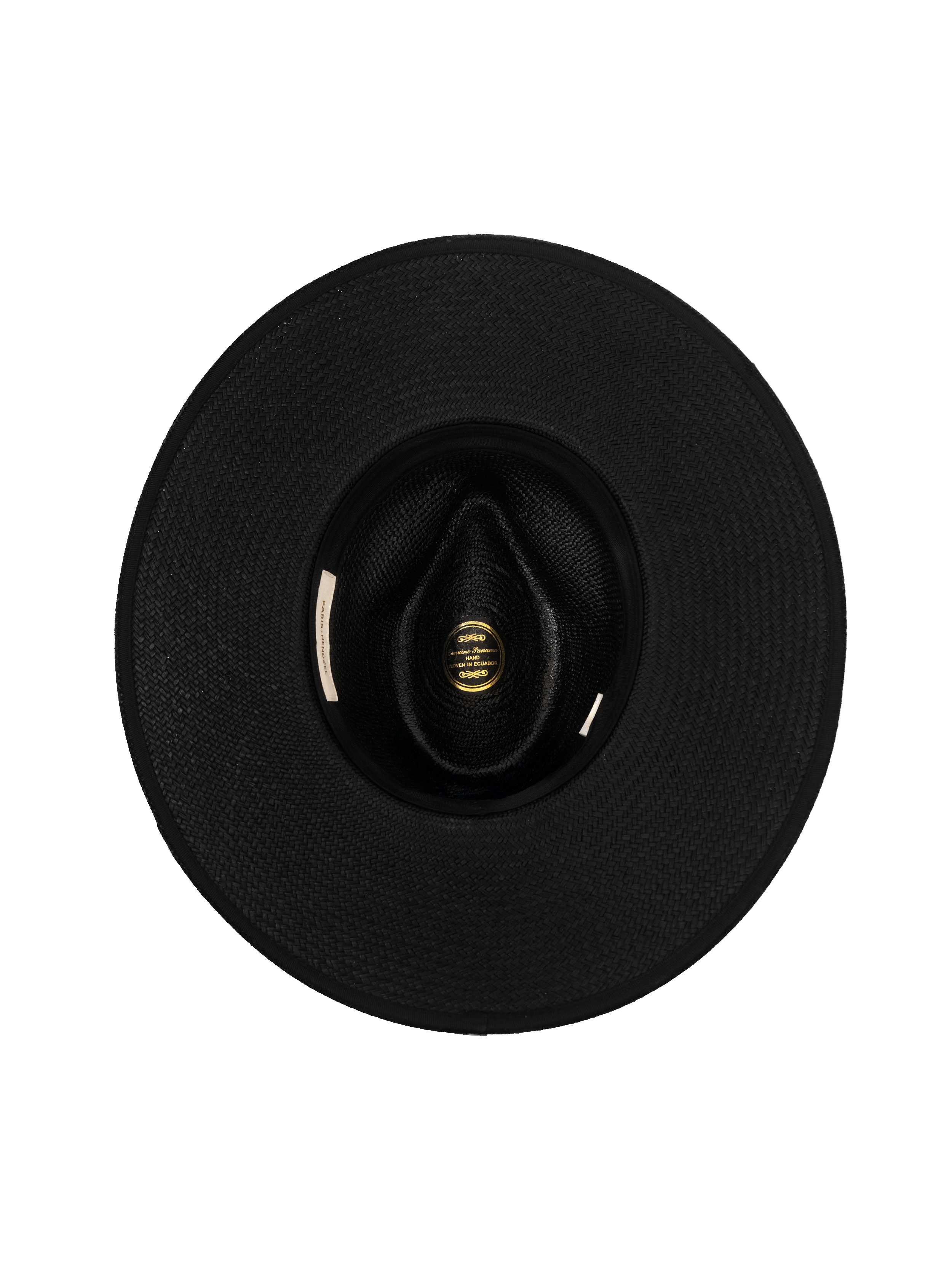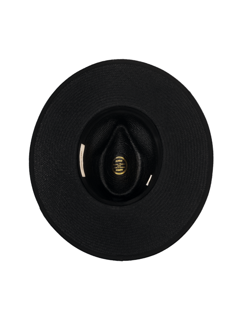 Panama with leather strap and embossed gold logo. Hat hand-woven from natural Ecuadorian straw. Product with a certificate of authenticity.