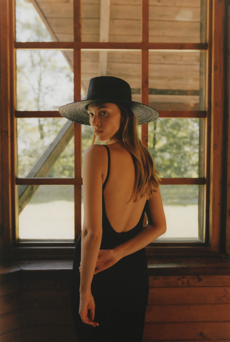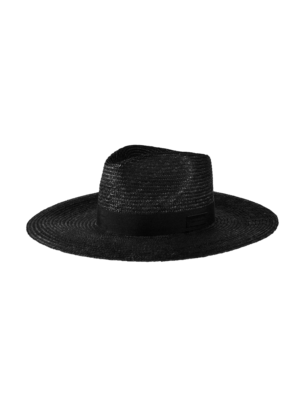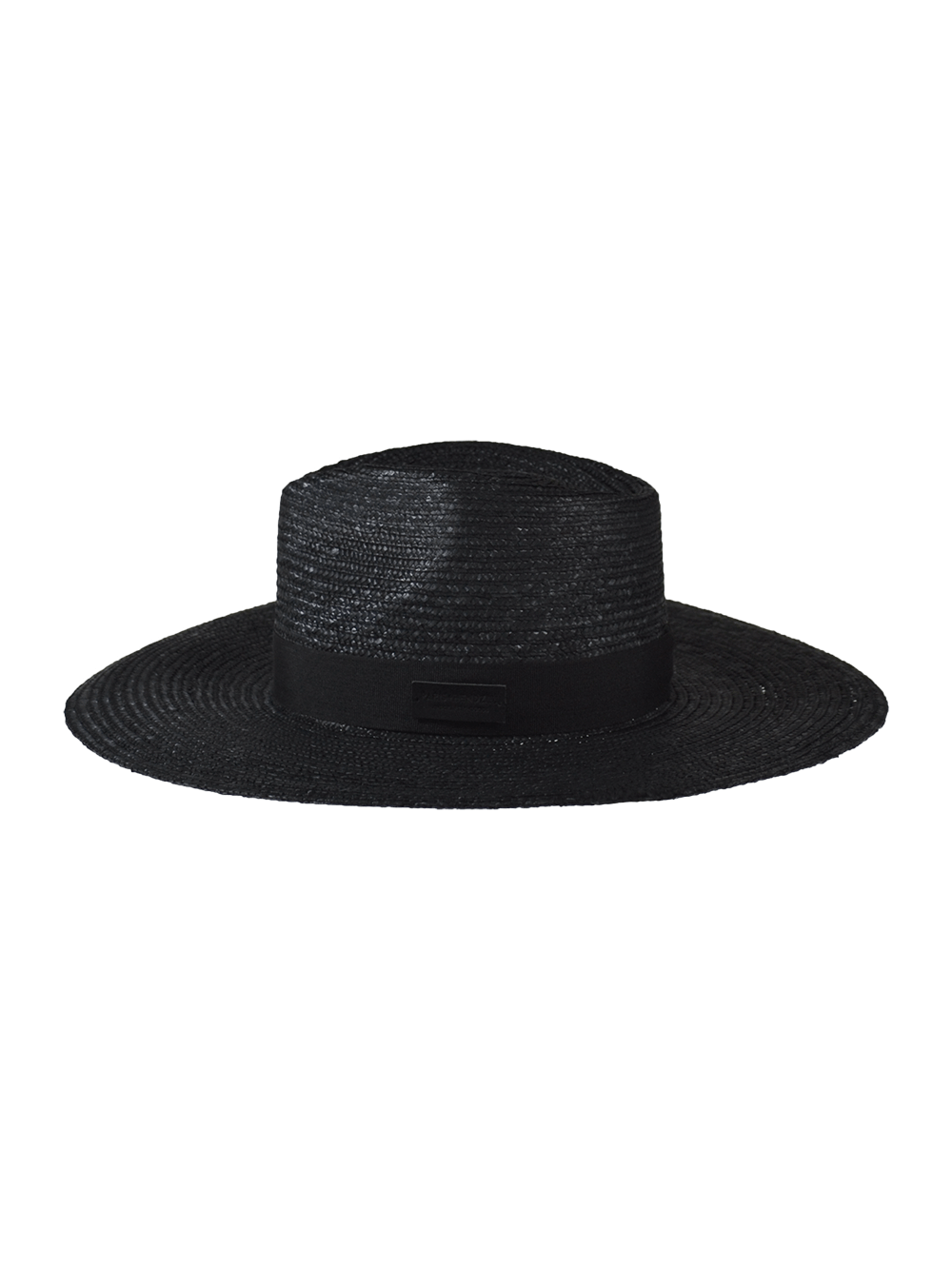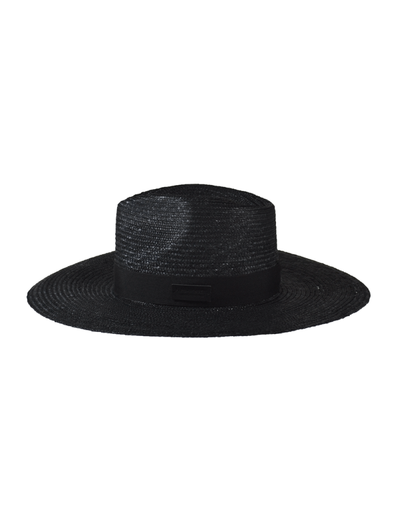 Ręcznie wykonany słomiany kapelusz Teardrop z regulowanym potnikiem i czarną wstążką.