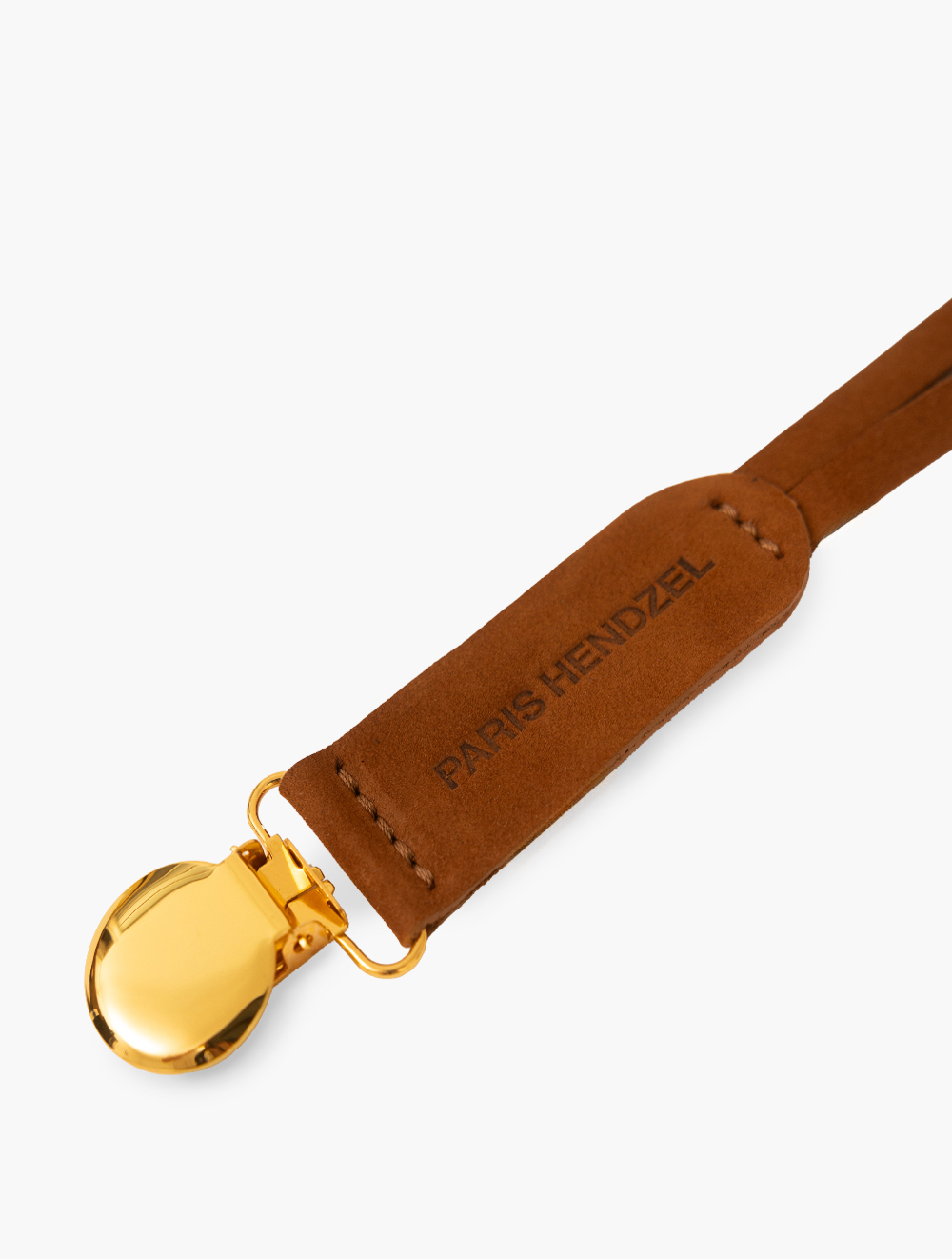 Klips do kapelusza – praktyczne i stylowe rozwiązanie w podróży. Złoty klips na skórzanym pasku z wytłoczonym logo PARIS HENDZEL umożliwia wygodne przymocowanie kapelusza do torebki, torby, shopperki, plecaka lub walizki. Idealny dodatek, który zapewnia komfort i chroni Twój kapelusz przed zgnieceniem.