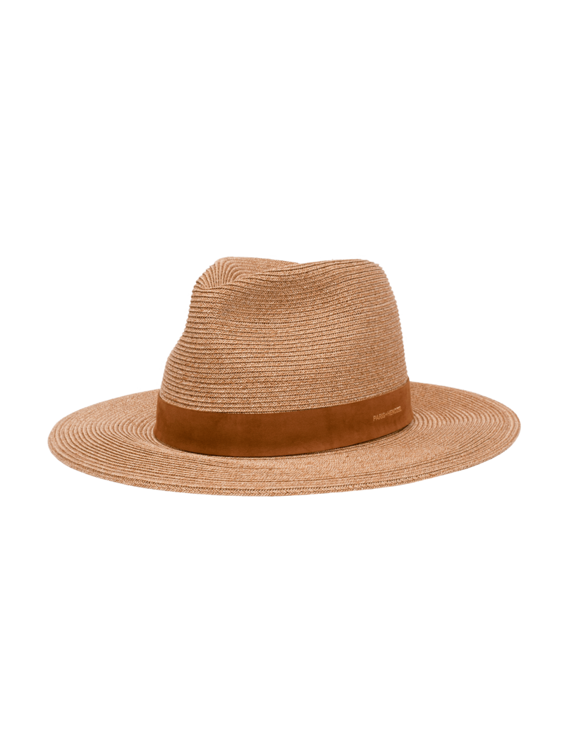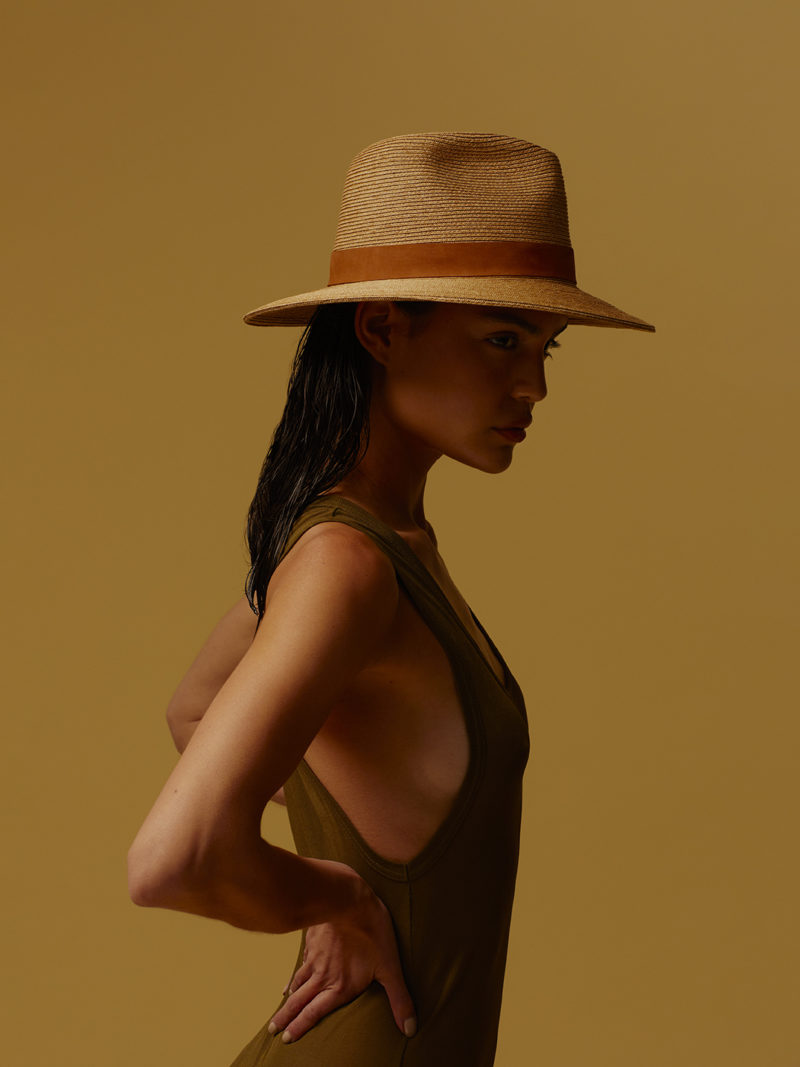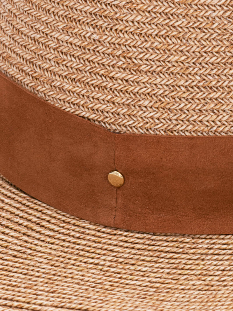 Ręcznie robiony kapelusz z klasyczną koroną typu Fedora. Wykonany z specjalnego japońskiego papieru, który wyglądem przypomina słomę. Kapelusz wykończony skórzanym paskiem z wytłoczonym złotym logo i złotym nitem.