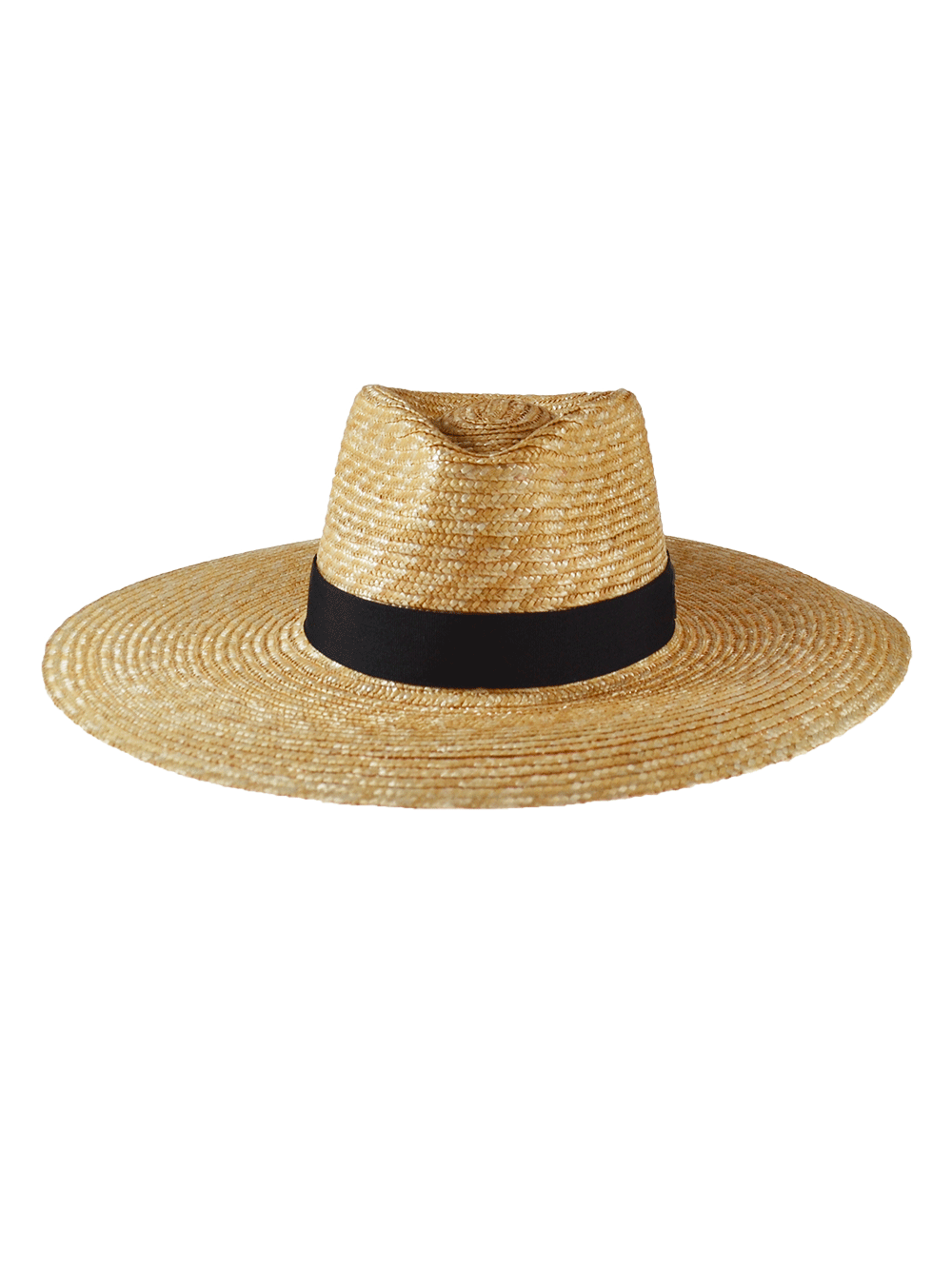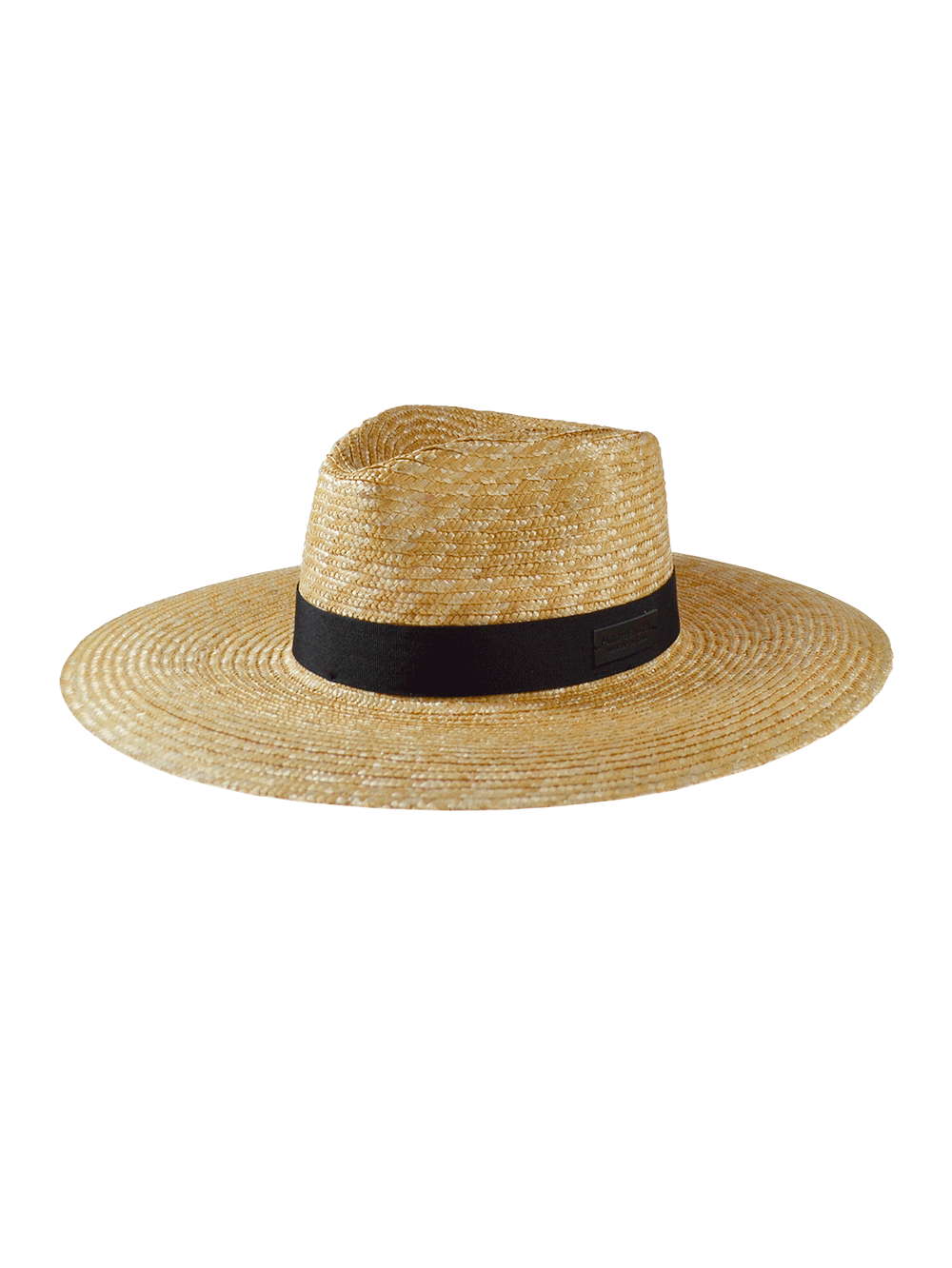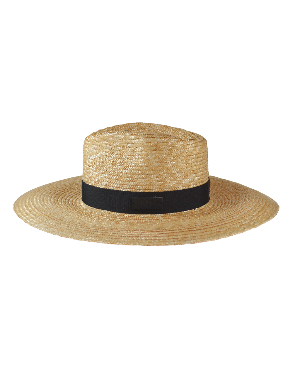 Ręcznie wykonany słomiany kapelusz Teardrop z regulowanym potnikiem i czarną wstążką.