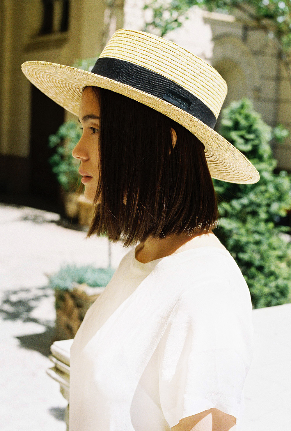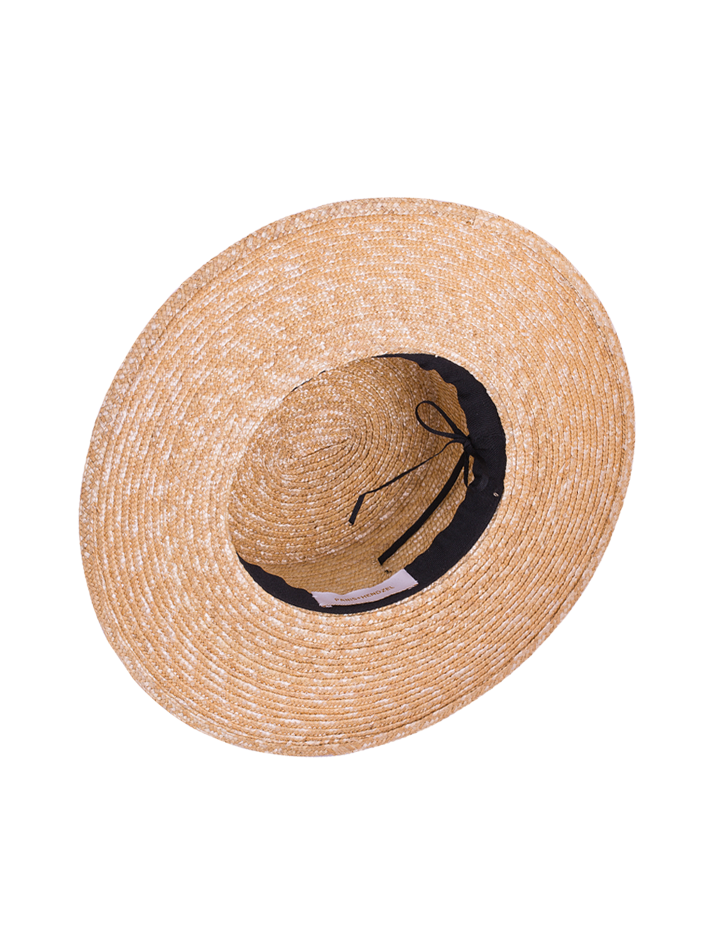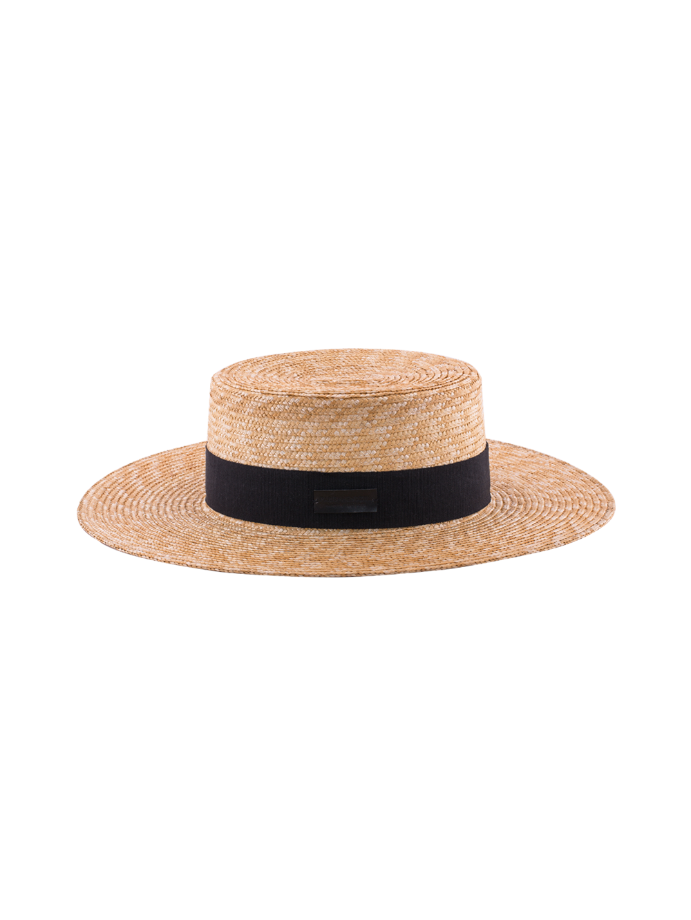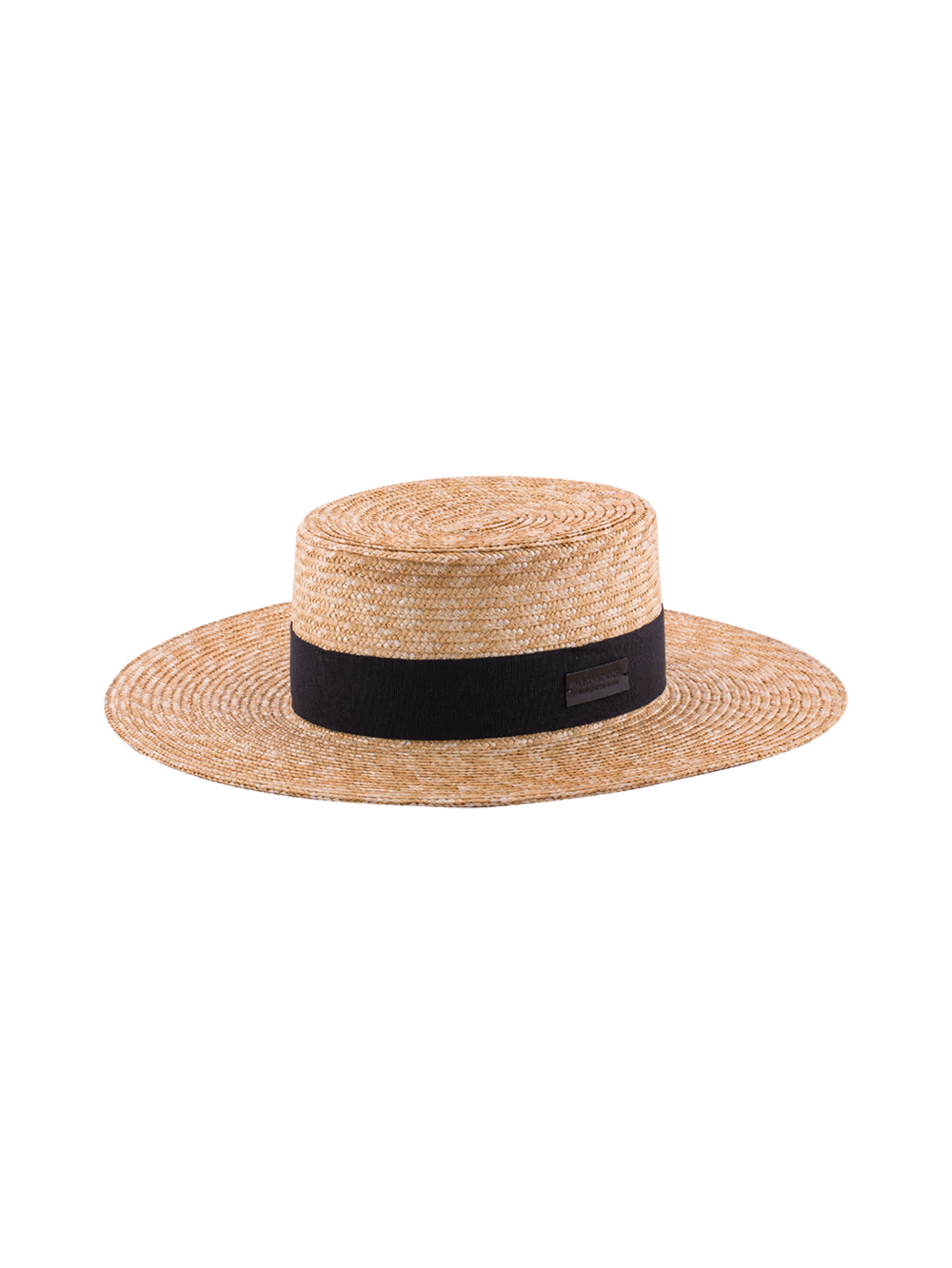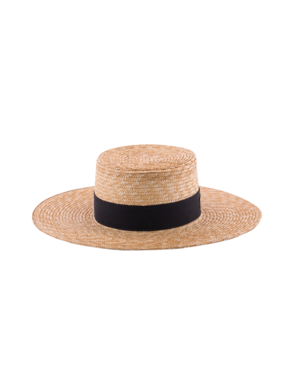 Handcrafted straw Canotier with adjustable sweatband and black ribbon.